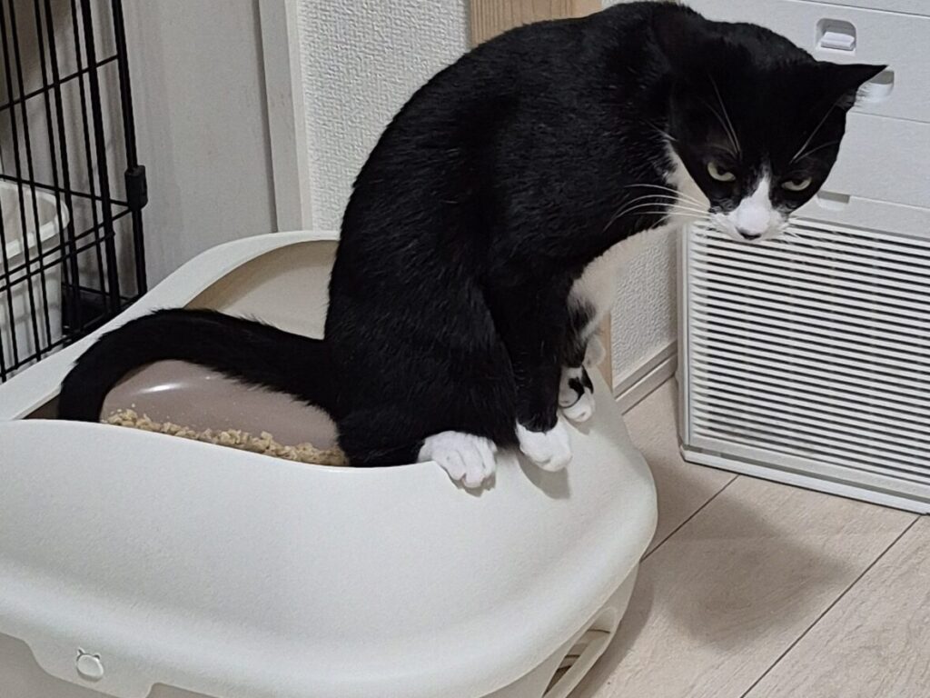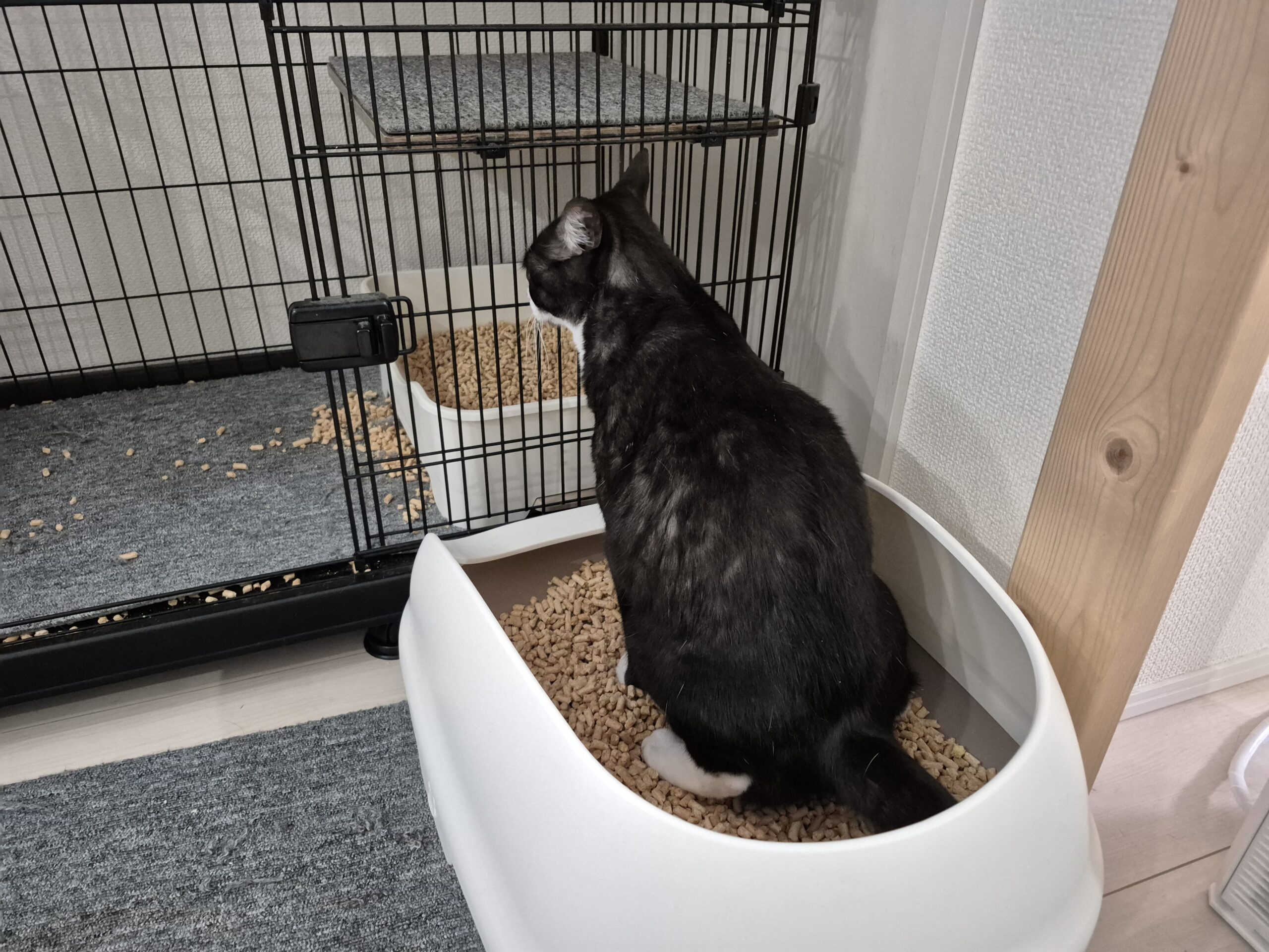 コウくん は物おじしない性格なので新しいトイレにもすぐ入ってくれますが、ゲンくん は慎重派なので、気分によってシンプルとハーフを使い分けている印象があります。