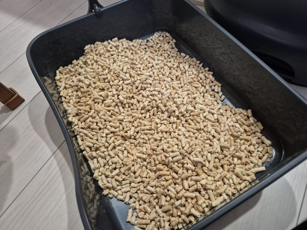 木製ペレットの場合、固まる砂と違ってこびりつく汚れが少ないため、丸洗いもかなりラク。
