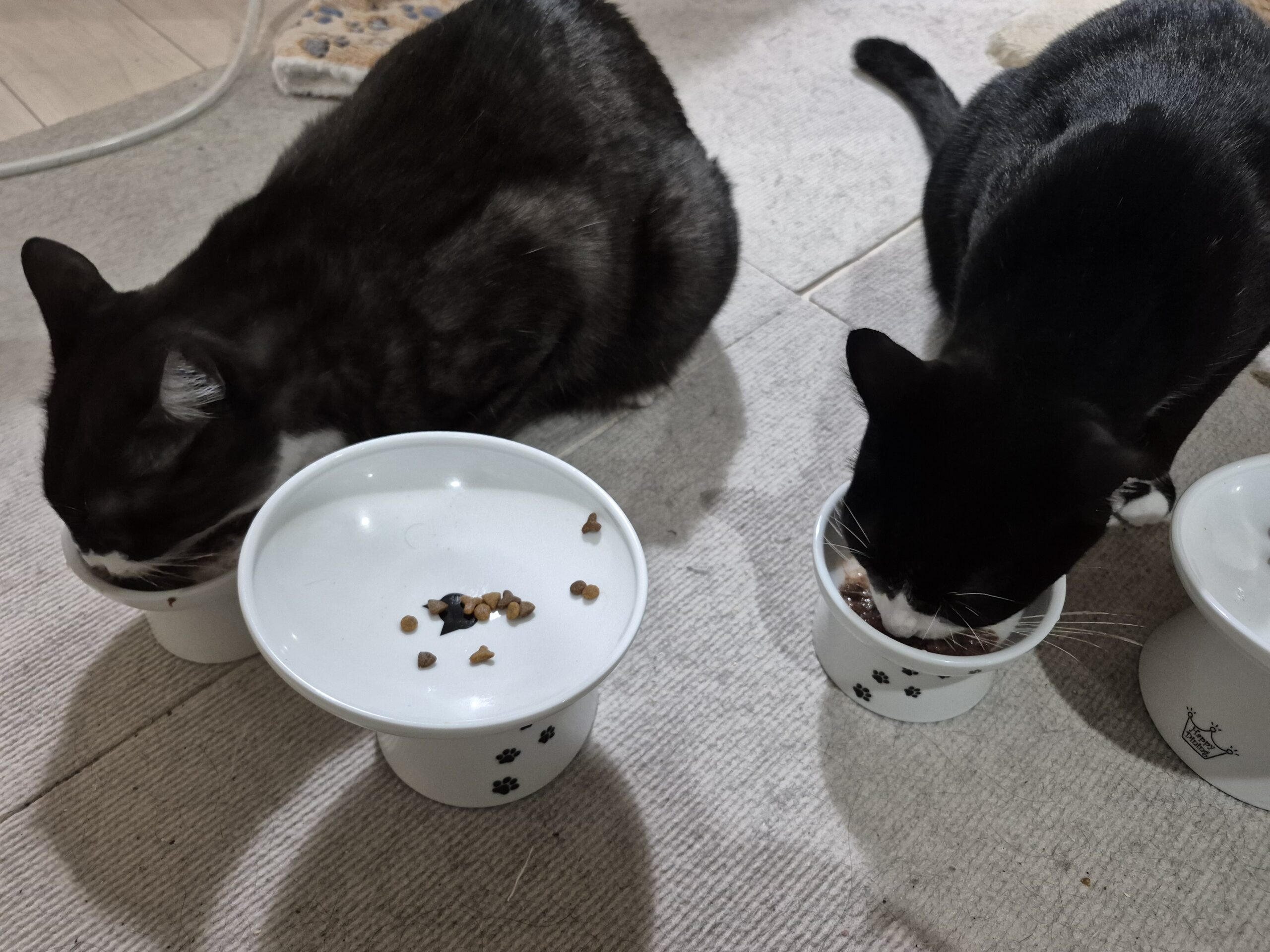 8時間おきにすることで、猫の空腹時間を一定にし、吐き戻しやドカ食いを防いでいます。自動給餌器も活用しつつ、できるだけこのリズムを守るようにしています。